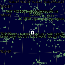 The Veil Nebula is a cloud of heated and ionized gas and dust in the constellation Cygnus of which the Eastern Veil Nebula is part. It constitutes the visible portions of the Cygnus Loop, a large but relatively faint supernova remnant. The source supernova exploded some 5,000 to 8,000 years ago, and the remnants have since expanded to cover an area roughly 3 degrees in diameter. The distance to the nebula is not precisely known, but data suggests a distance of about 1,470 light-years.